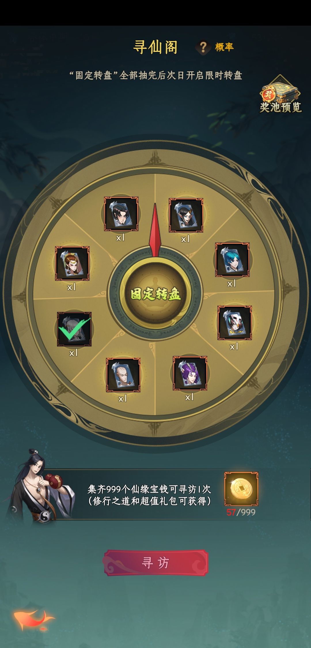 999币子寻仙阁转盘,记住!!!999先换句芒,剩下的抽千童,千童出了以后再在同伴秘境抽!!!!