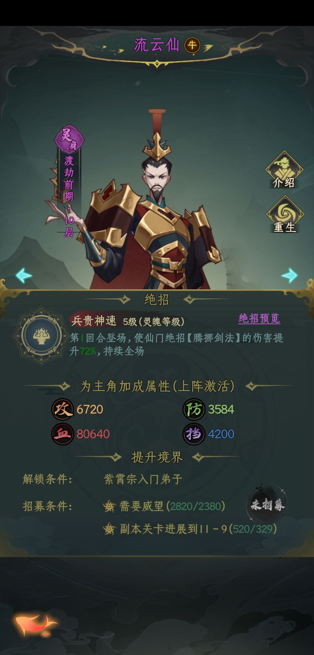 宗门达到一定条件,威望招募。主打一个百分比减生命,还减防御,pve可以带带,pvp不建议。