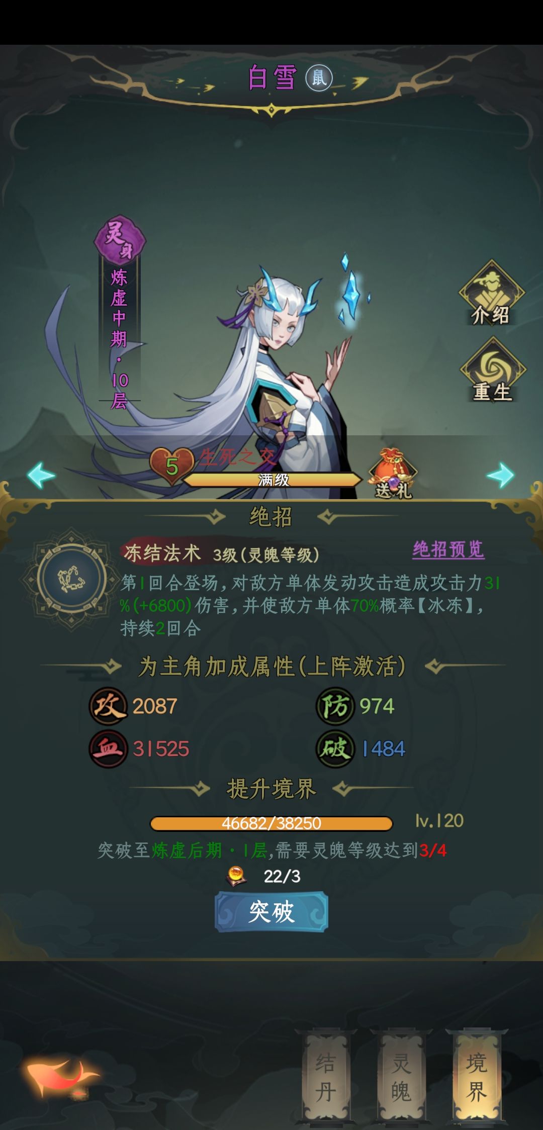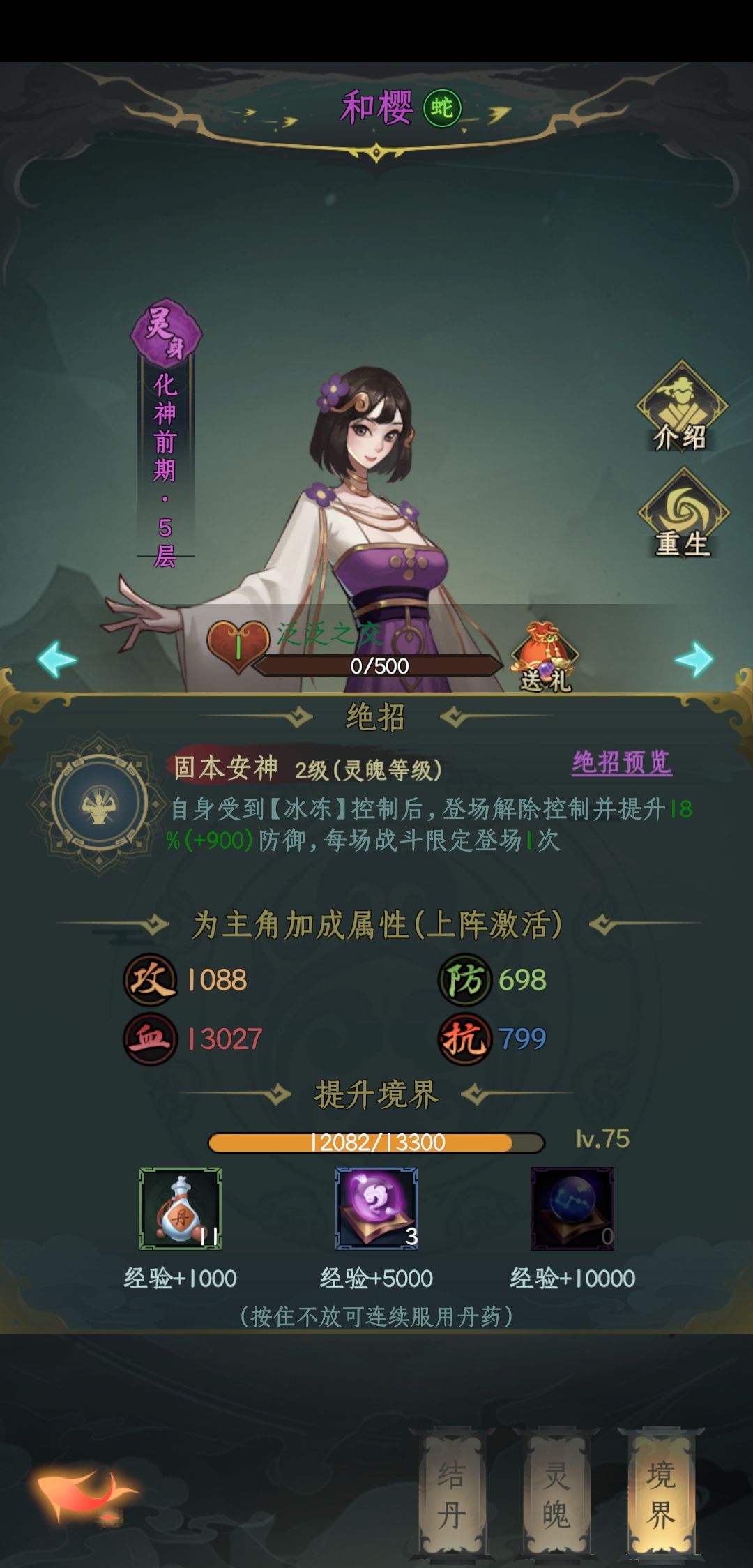 解控,解冰冻专用,大佬可以在宗门战中使用,解冰冻,加防御。威望招募