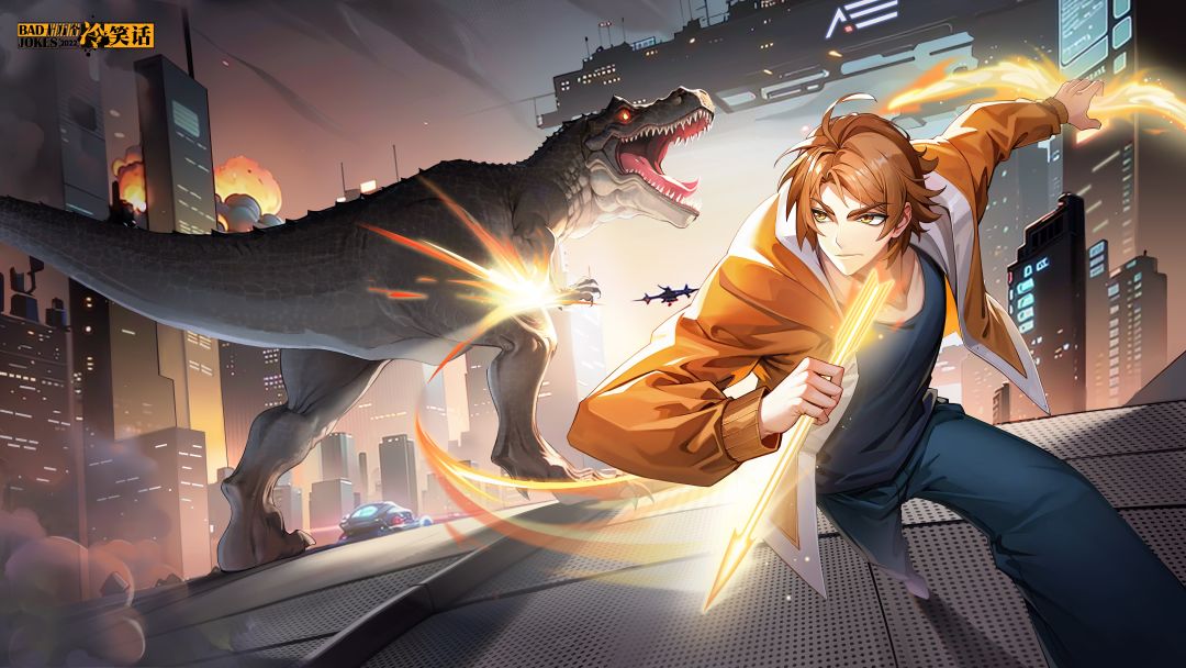 无名面对鸟不拉屎大王召唤出的巨齿龙兽,手中紧握吐槽能量具象化的光之神箭,一个箭步冲向前去,给了巨齿龙兽一记痛击!
