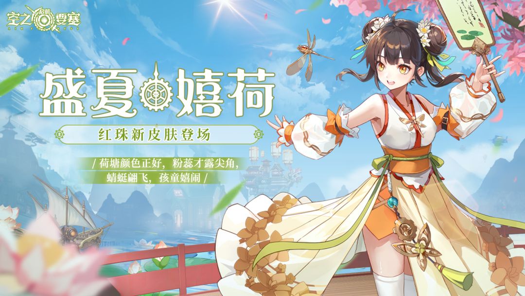 红珠新皮肤「盛夏嬉荷」即将上架时装商城,“荷塘绿颜小荷露尖,陛下闲时与红珠赏荷歇息可好~”