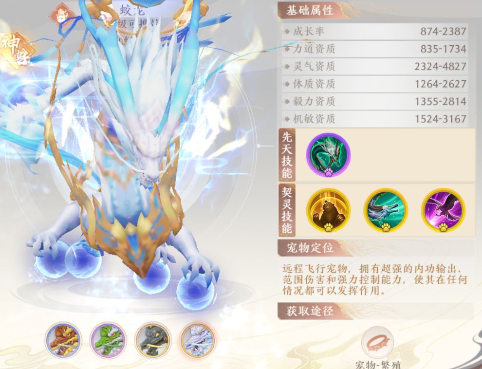最后一个破功就牛X了,只要穷奇造成伤害就有2%的概率附带1秒的眩晕效果,加上这货的体质跟毅力属性值都不差。如果想在PVP恶心人的话,还可以考虑一手主体力的加点方法,然后打上一堆的回血护盾技能书,把穷奇当成一个纯控制宠物去玩。