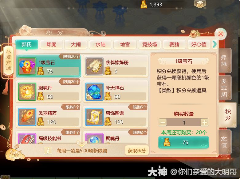 2)地宫积分每周宝石兑换上限上调至7颗;