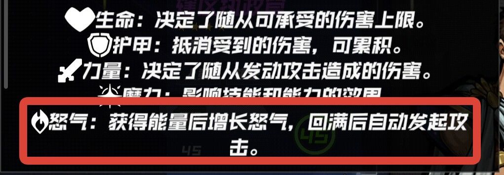 讲回怒机制之前先说攻击机制,攻击机制是当随从回满怒气后进行一次攻击,如果有对位的敌人,对对位的敌人造成一次攻击伤害,如果没有对位的敌人则攻击敌方最前面的随从。每回合每随从只能攻击一次,攻击完后不再回复怒气。