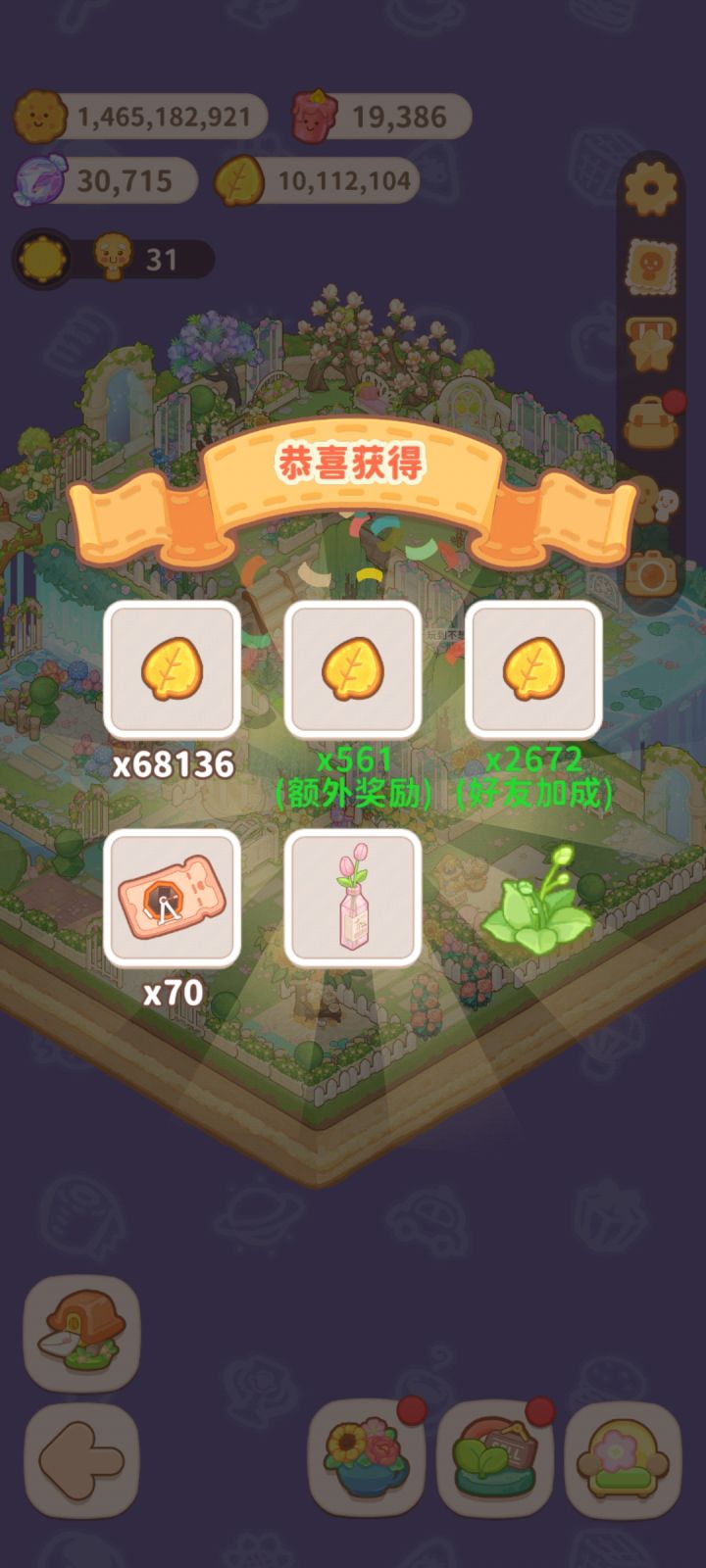 然后这个出转转卷概率也很高,在不出花情况下比纯金叶子还多,每次47-89不等。