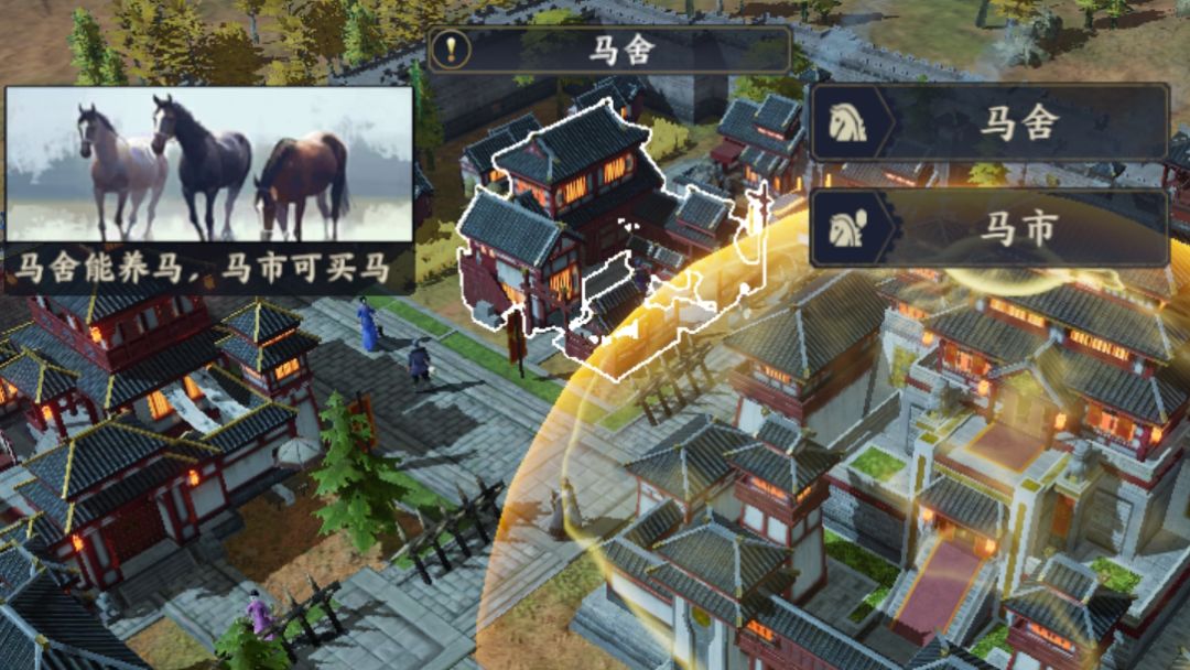 马舍:是购置马匹和养马的建筑,公府19级开启,马舍属于功能建筑,无需升级。跟随主府升级解锁即可,马匹可为部队提供不俗的属性加成。