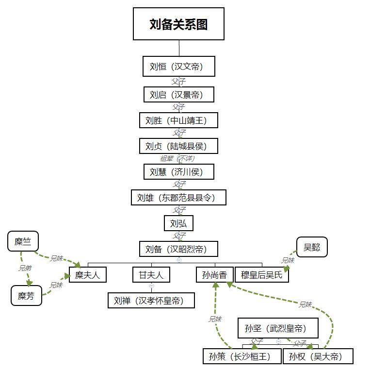 且说刘备在一开始时,常常以“汉室宗亲,中山靖王之后孝景帝玄孙”自称,凭借这一说法,获得了一定程度上的优待,至于是否真假,则有他人来判断,今日为大家带来的是刘备的关系图,好让各位对刘备的身份有了更好的理解。