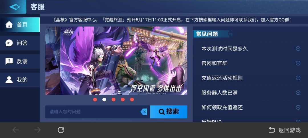 ※若冒险者们在游戏过程中遇到任何问题,欢迎在游戏中,点击游戏界面“右侧菱形按钮>>设置>>客服”中联系客服※游戏内设置界面——点击下方的客服中心反馈