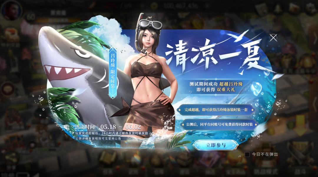 全新玩法开放,吕玲绮泳装时装超越即送,公测免费继承