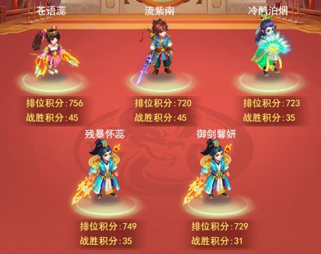 ◆每位少侠在赛季初都有1000个排位积分,进入活动后,可以选择擂台之上的少侠进行挑战,打败对手则会得到其对应的“战胜积分”;