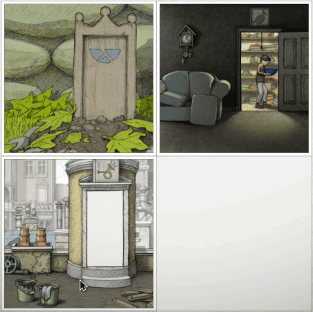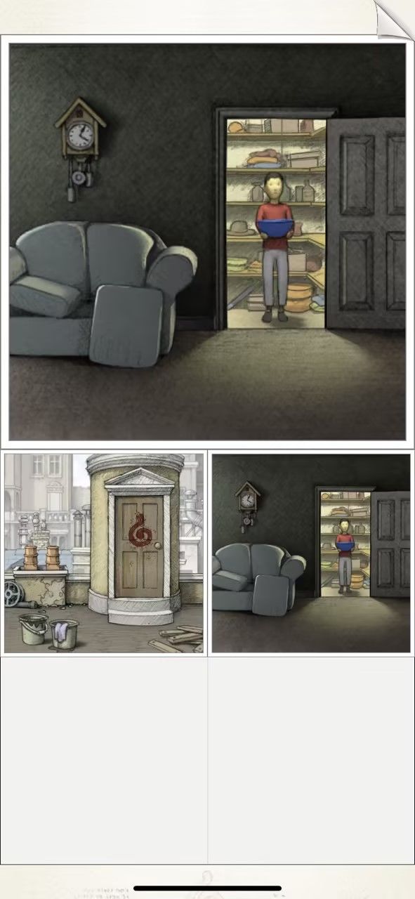 原本看似不相干的图片,通过一层层放大、缩小和拼接,竟然可以相连并且进行互动,帮助主角开拓新的道路,推动故事的发展。你还可以拖动一个区域的部分场景到另一个区域,达到如同哆啦A梦“任意门”的效果,将人物行动的过程由单纯的移动,变成一层层的世界变换: