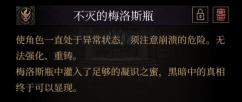 其次,结合点亮梅瓶所需的材料:珊瑚虫骨,凝识之蜜。同样联系位面论,我们可以发现二者皆是跌入污秽位面后的独有产物,在格位上与高位的污秽位面更加接近。但梅瓶却可以完全压制住这些高位的材料,甚至以它们为燃料。就此,我们推测出:梅洛斯瓶,是比污秽更高位的存在