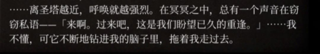 4.“啊……贪婪的执念……我们都曾为它所蒙蔽,不是吗”。字面意,贪婪和蒙蔽大概指泰伦斯将自己内心对当年作为侩子手,参与马吉安人大屠 杀的负罪感通过追寻特蕾莎而暂时放下的做法