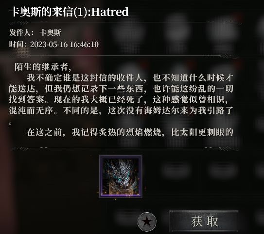 活动详情:解开卡奥斯的信件谜题,即可获得奖励。