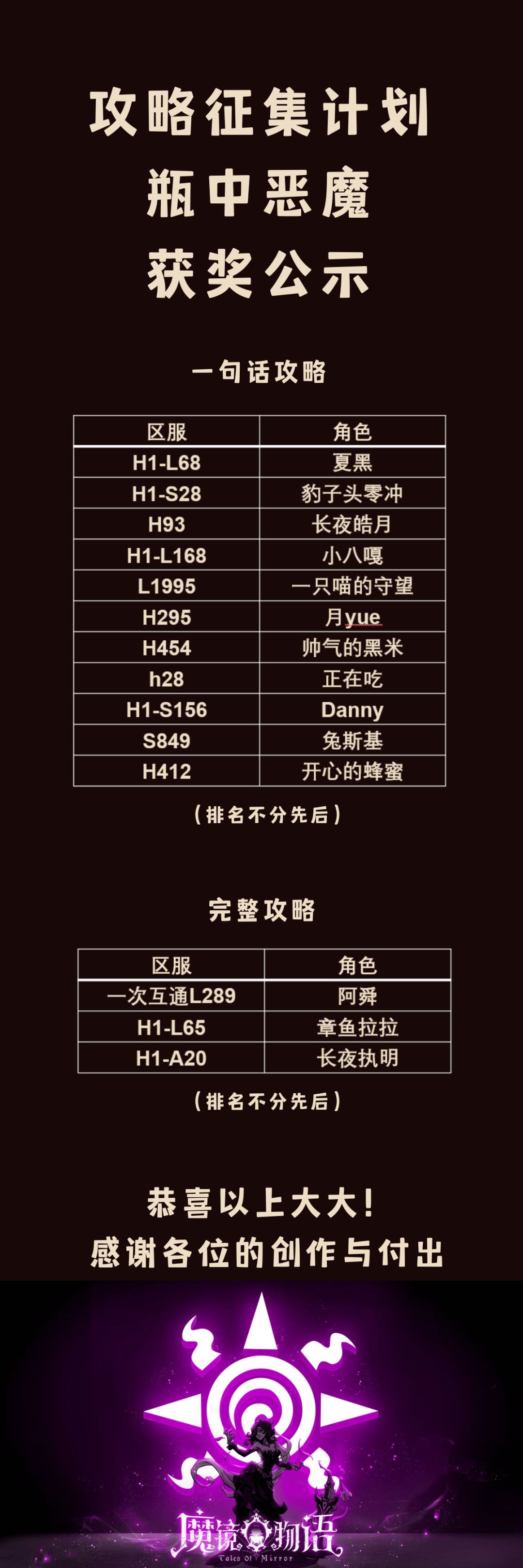 投稿有奖 | 瓶中恶魔伙伴攻略征集活动(名单公示)