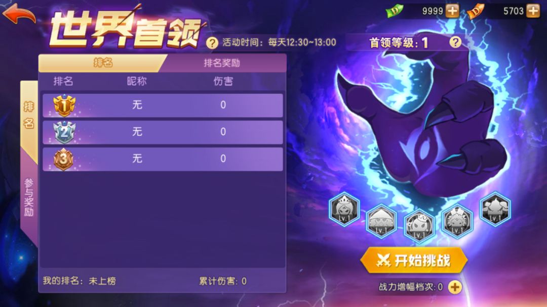 (5) 玩家在世界首领战斗中可获得10000生命的增幅,另外可通过消耗点券或绑点提升战力增幅档位,每档可提供100伤害,最多可提升至10档