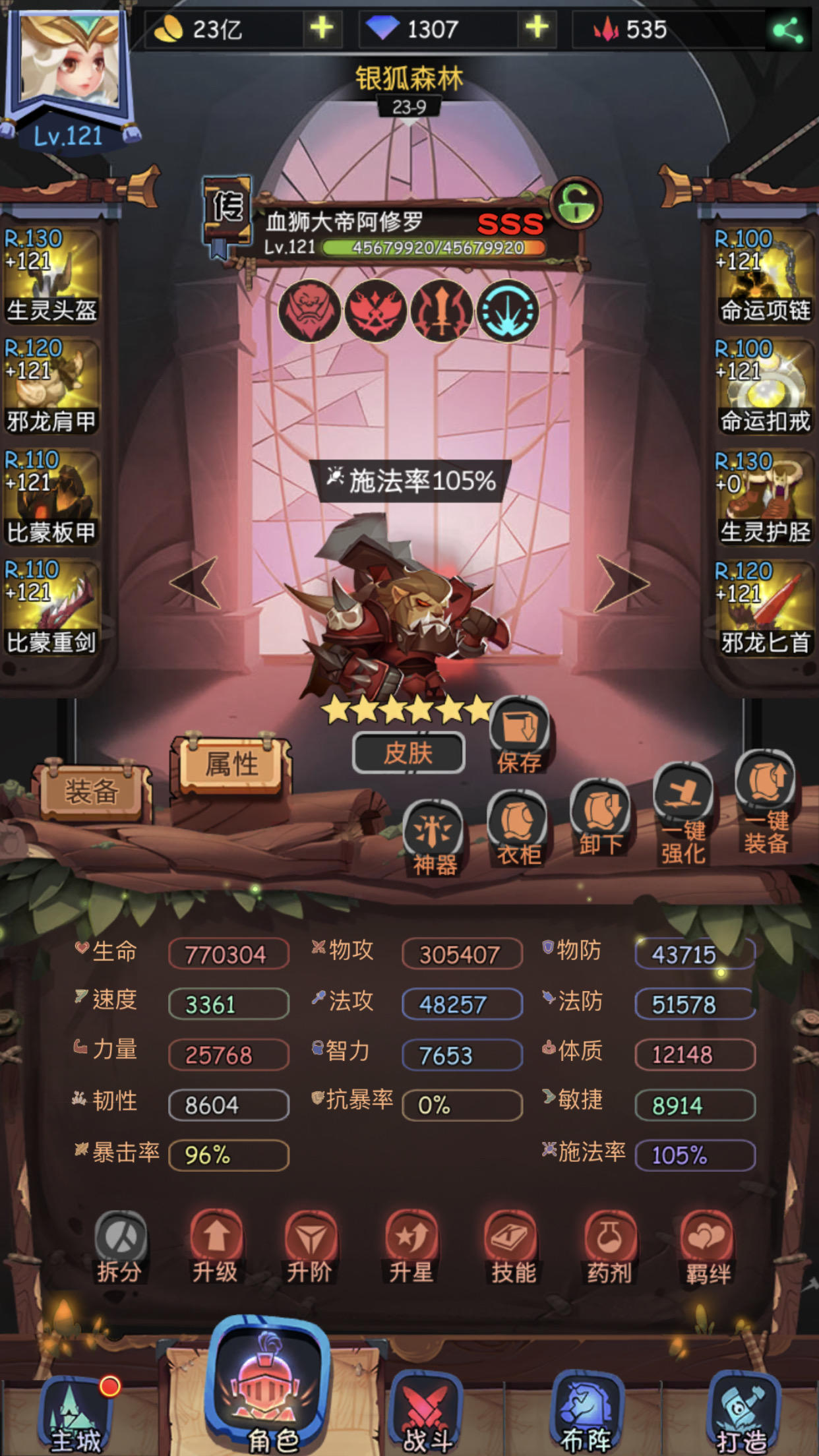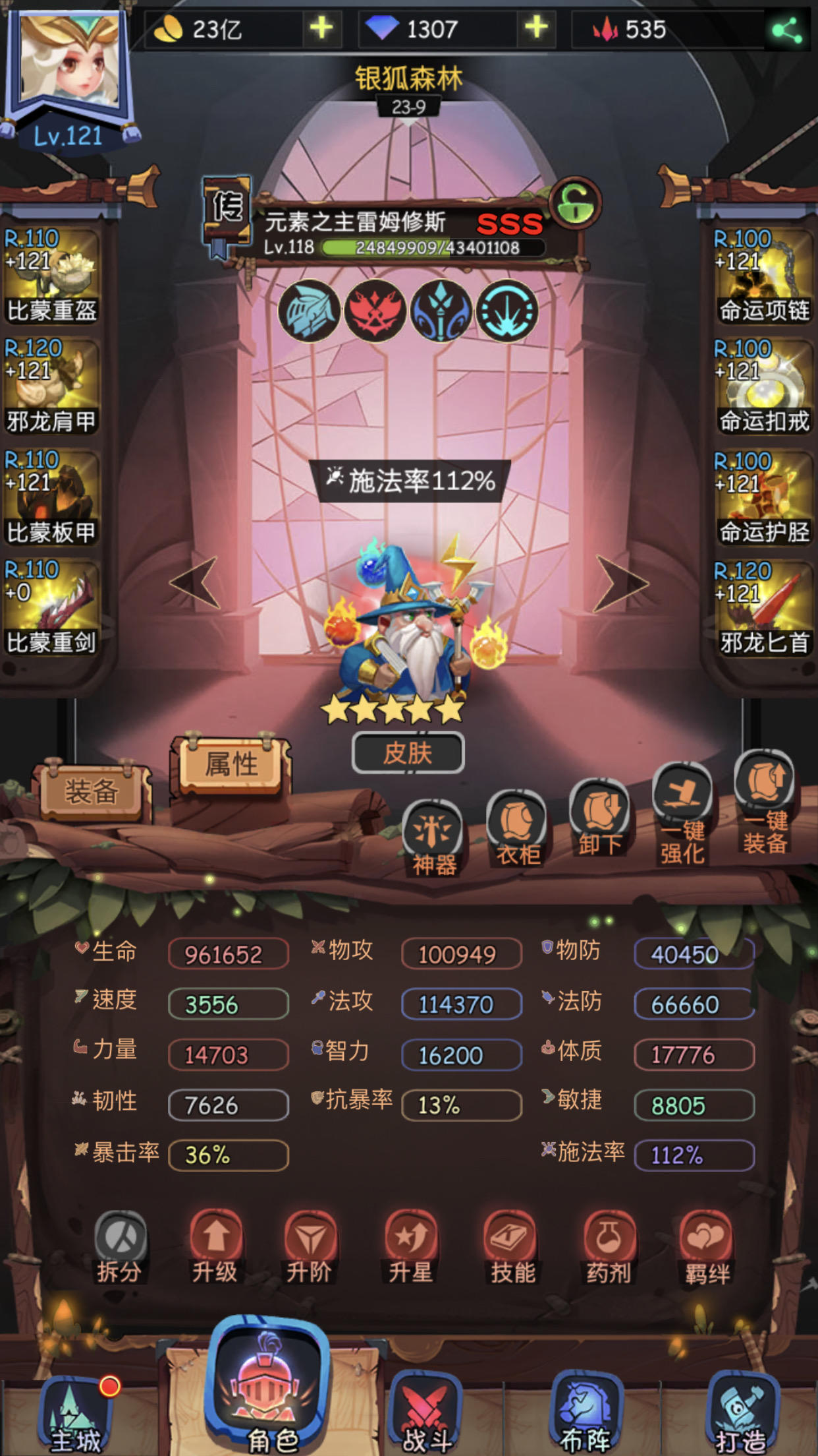 法伤神器男主,带至高和被动加血(之前带的冰冻发现扛不住,很容易突然暴毙一个人,虽然被动加血触发机会也很少,不过容错率提升了,并且冰冻25%概率太小非常看脸,所以就改变冰冻策略了)