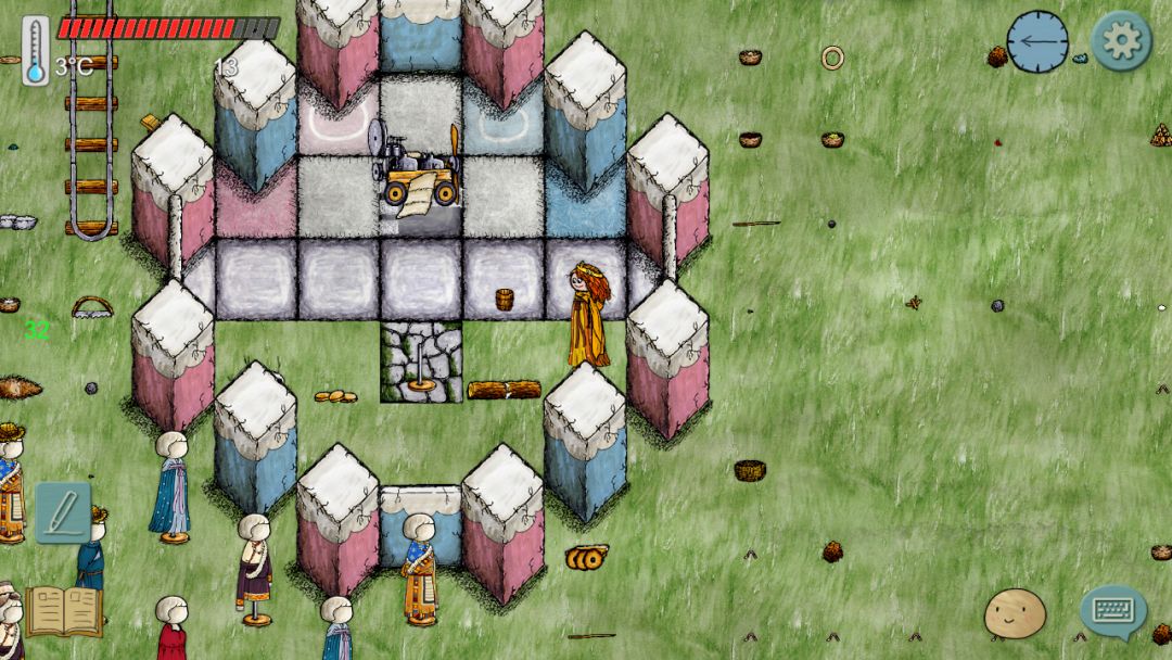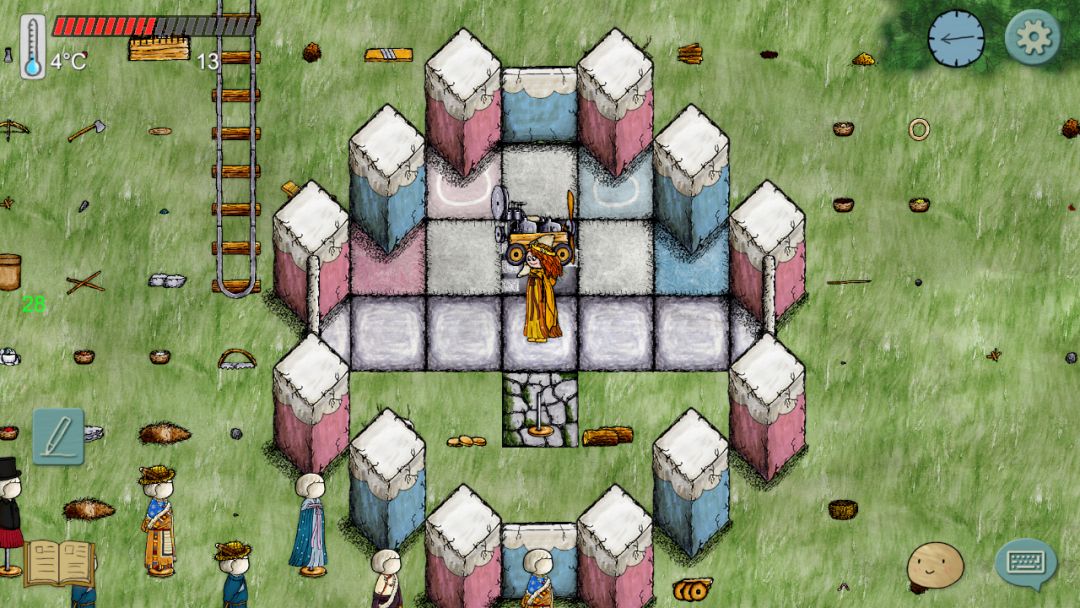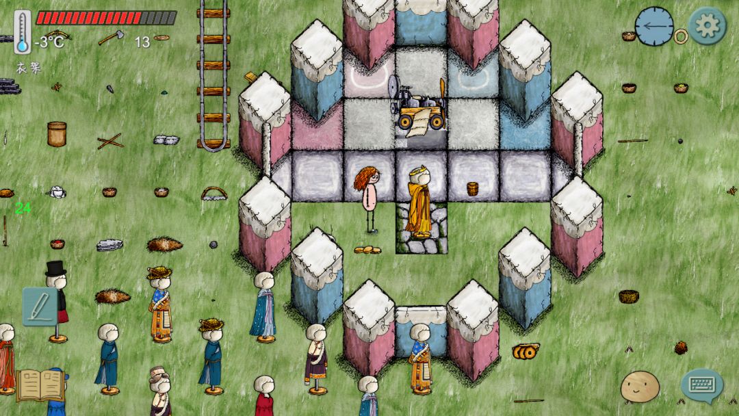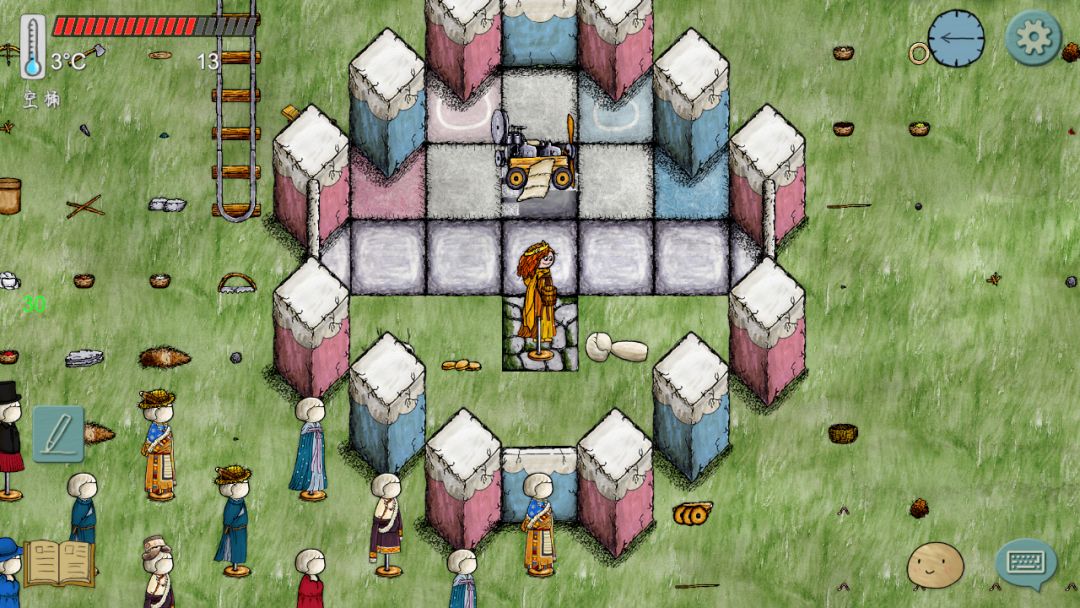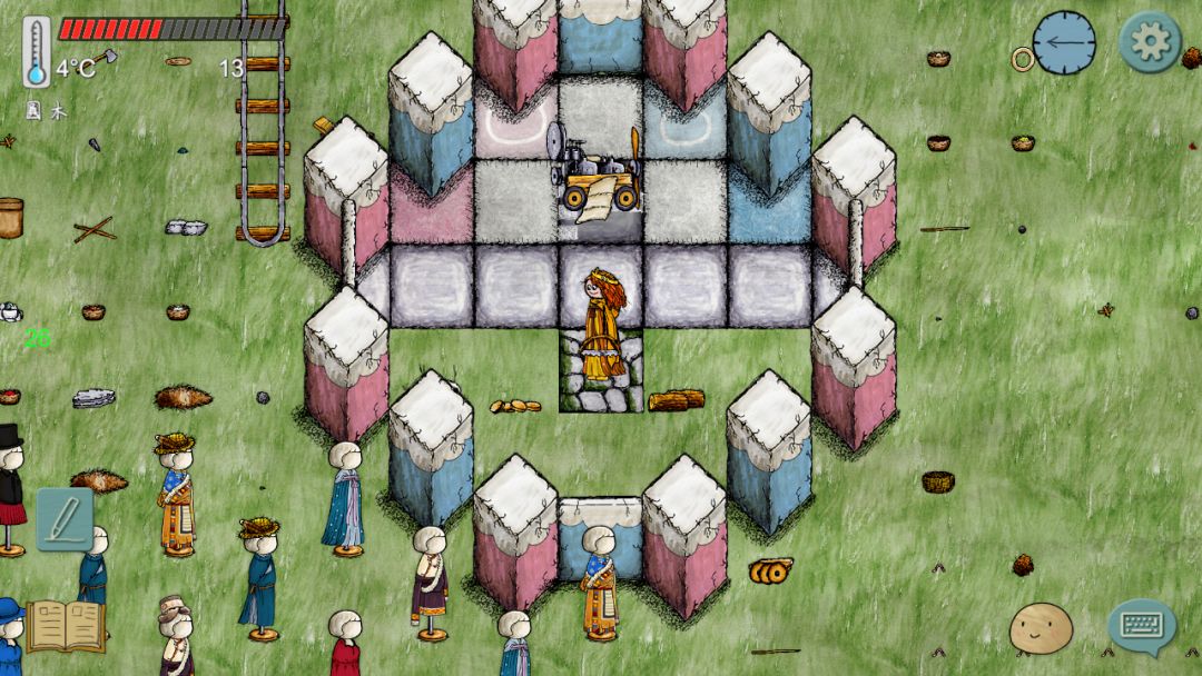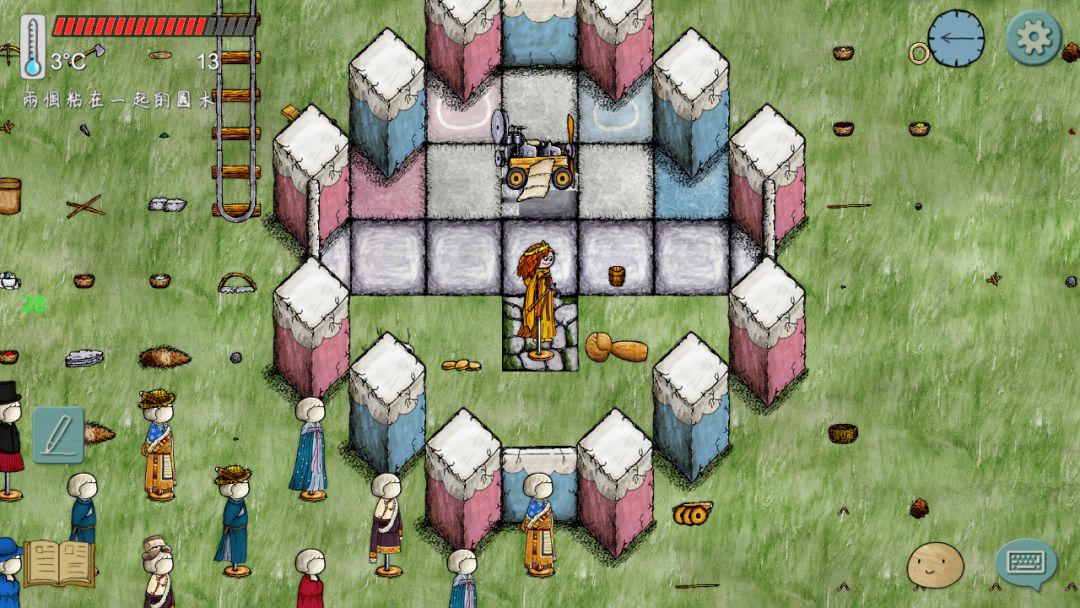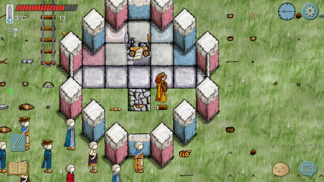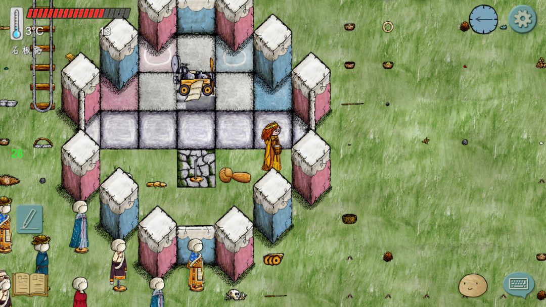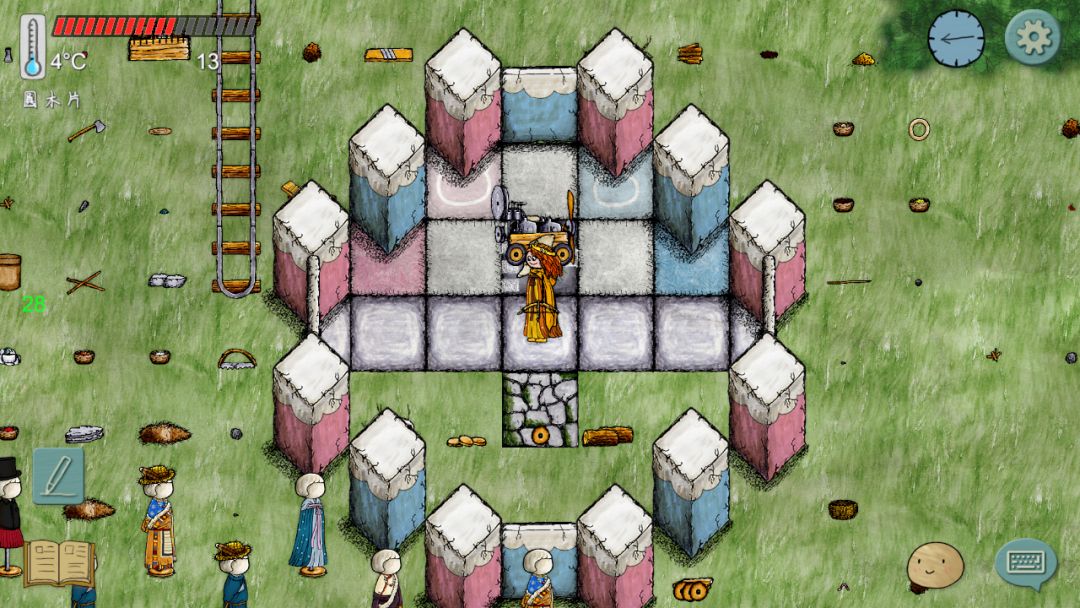 然后拿出1个圆木片用燧石钻头钻成木轮子