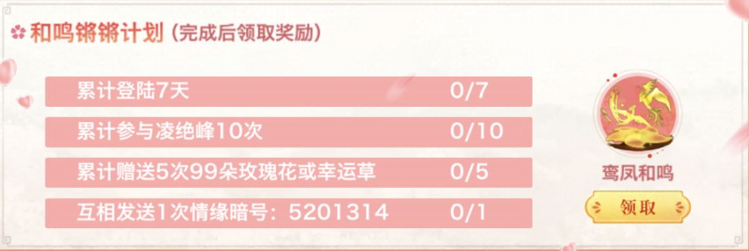 除了黎饰返利以外,少侠组成队伍完成和鸣锵锵计划,还可以领取价值999黎饰的鸾凤和鸣大烟花!