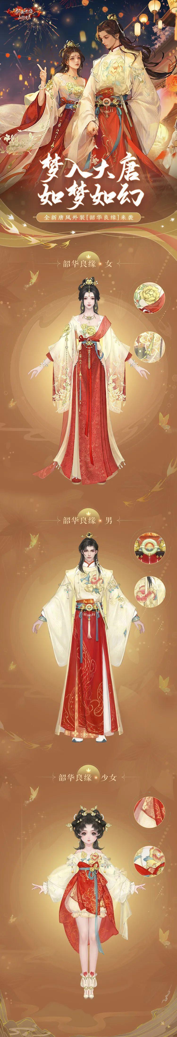 君心似我心,不负相思意。全新唐风外装【韶华良缘】将在5月19日-5月31日期间限时来袭!提前划重点!这次新外装是黎饰方式售卖,还可以双人组队享买一送一福利!