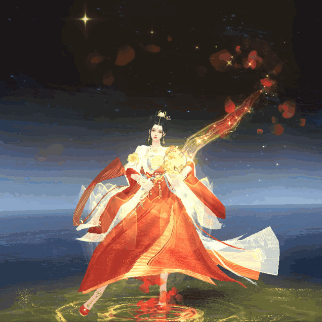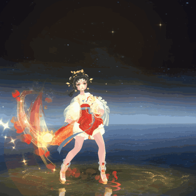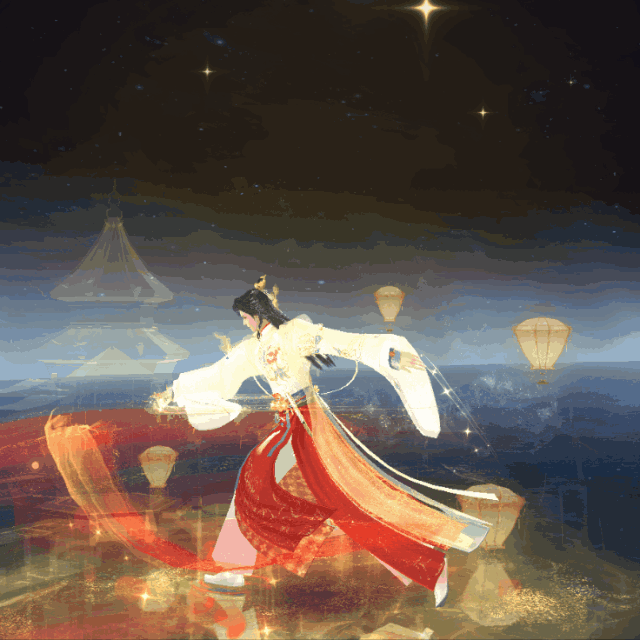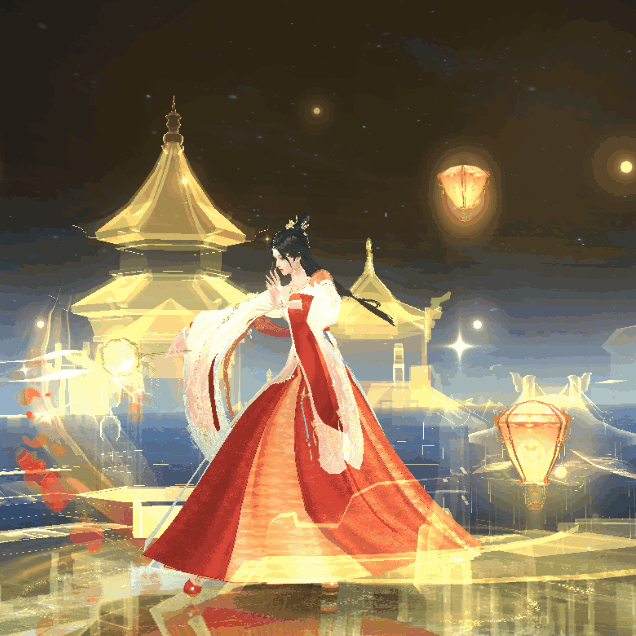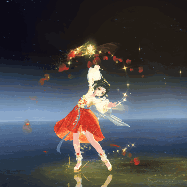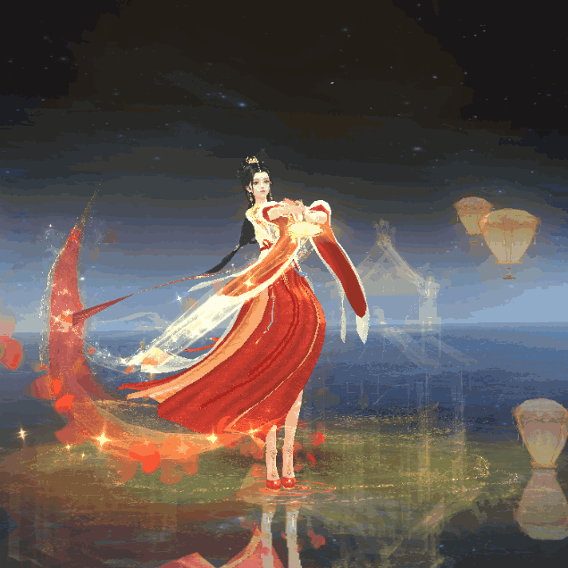少女弯腰俯身,绯红花瓣伴随她的舞姿簌簌散落,赤色鎏金裙更显华贵非常,天灯缓缓从半空升起,这场盛唐之景如梦如幻!