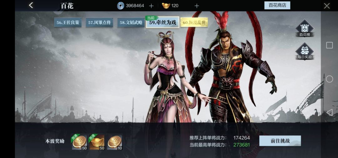 回归正题,接下来谈谈打百花的技巧,如果主公是平推流,喜欢碾压的局面,只需要提升武将战力即可。