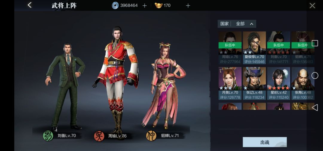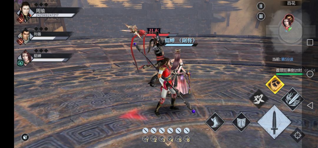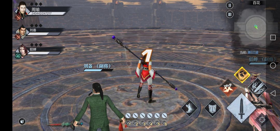 我带的是周瑜,刘备以及貂蝉(辅助,可以少量回血)主公们可以根据自己的方式任意组合武将参加战斗。