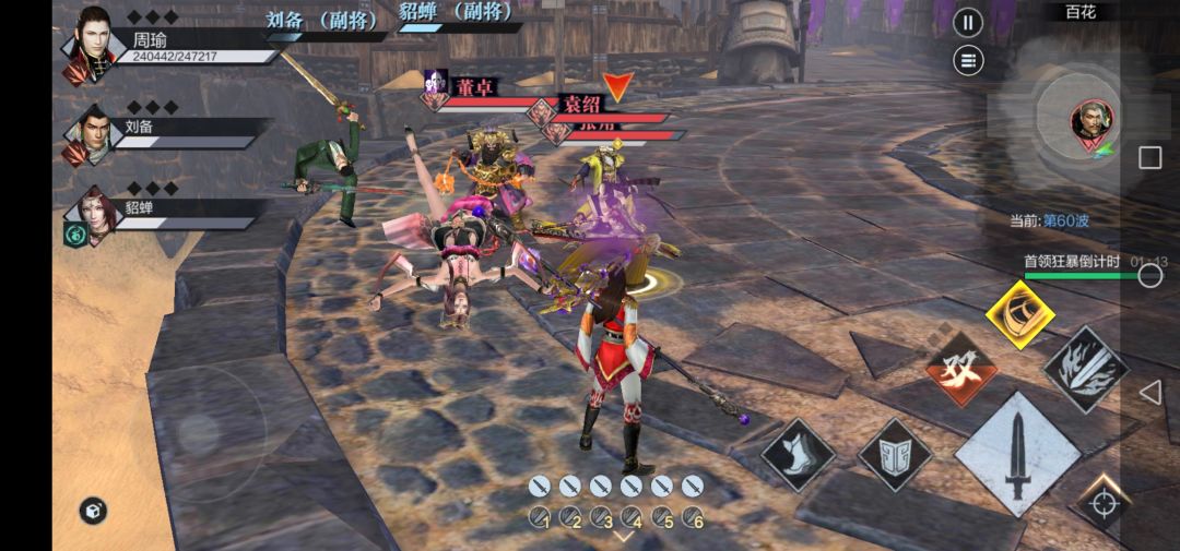 ,咳咳,不对,打出连招的时候了 可以轻松击败守关武将,进入下一关。还有要注意的是,在屏幕右方有一个首领狂暴倒计时,要在此之前击败守关武将,不然当他们陷入狂暴时,攻击防御都有大幅度提高,一定要合理利用时间,为什么我会告诉主公们,问就是眼泪(当时首领被我打的还剩一点血,结果狂暴后我半格血被一刀秒杀)