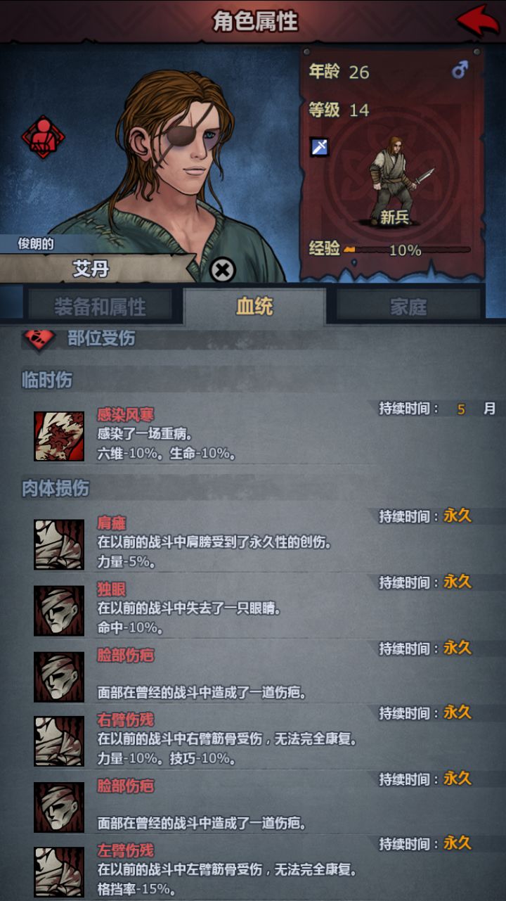 可我一直没有弄出独眼和断右臂,是不是艾丹被设置成无法刷这两个伤了
