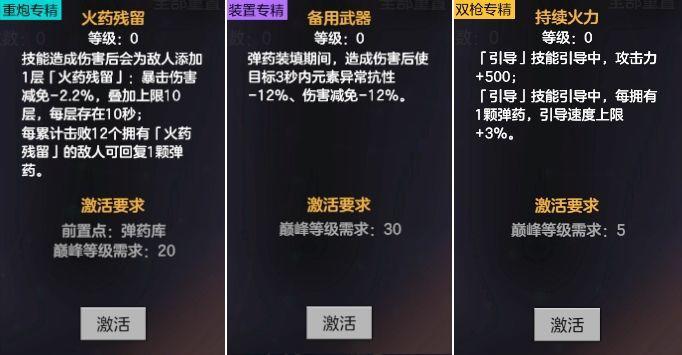 「枪手训练-瞄准」暴击率提高20%→10%,暴击伤害提高50%→30%