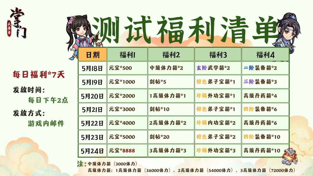 这个暂时保密,掌门请持续关注玩家群或论坛最新消息~