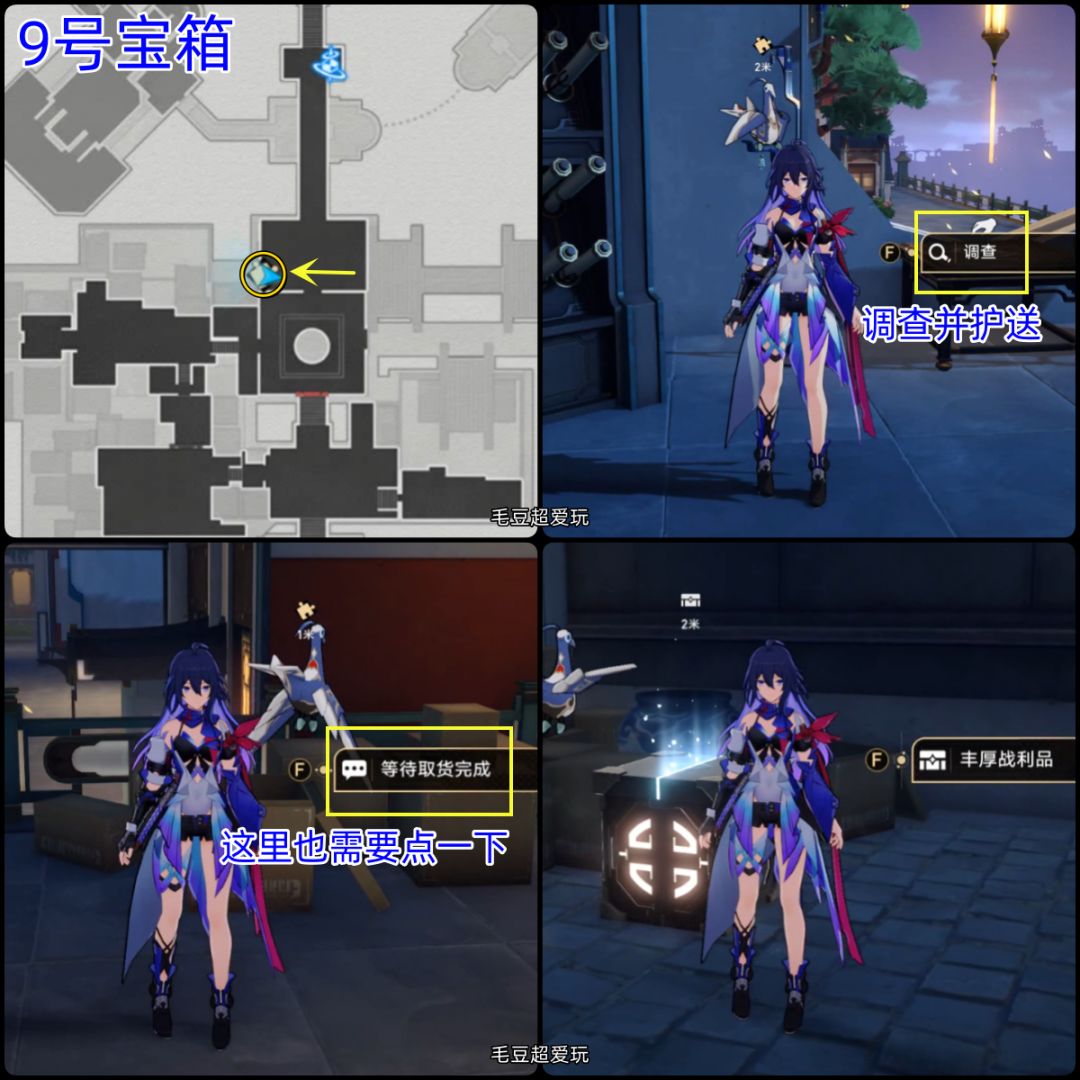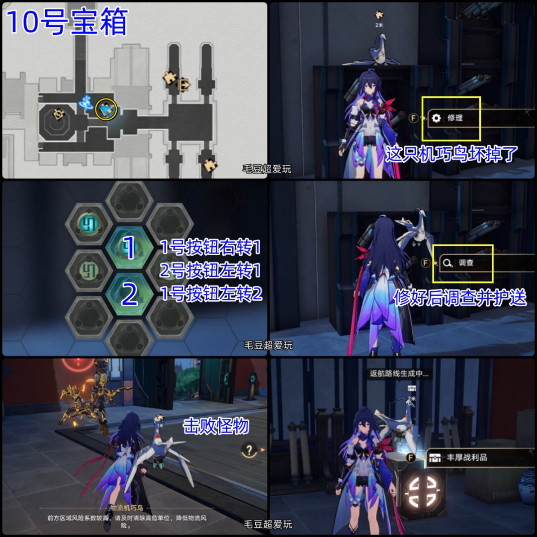9号宝箱(机巧鸟):机巧鸟就在8号宝箱旁边,非常好找,调查并护送,就可以拿到箱子了。