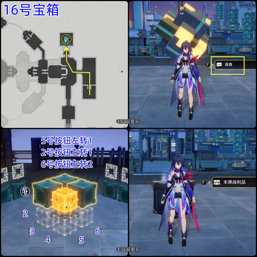 16号宝箱(魔方):这里还是一个魔方解谜,按下图解谜顺序即可。