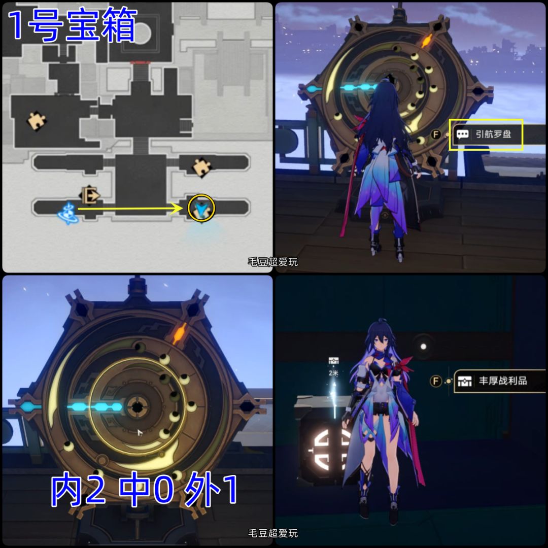 2号宝箱(罗盘):2号罗盘的位置在1号的正对面,从地图左侧绕一下即可。