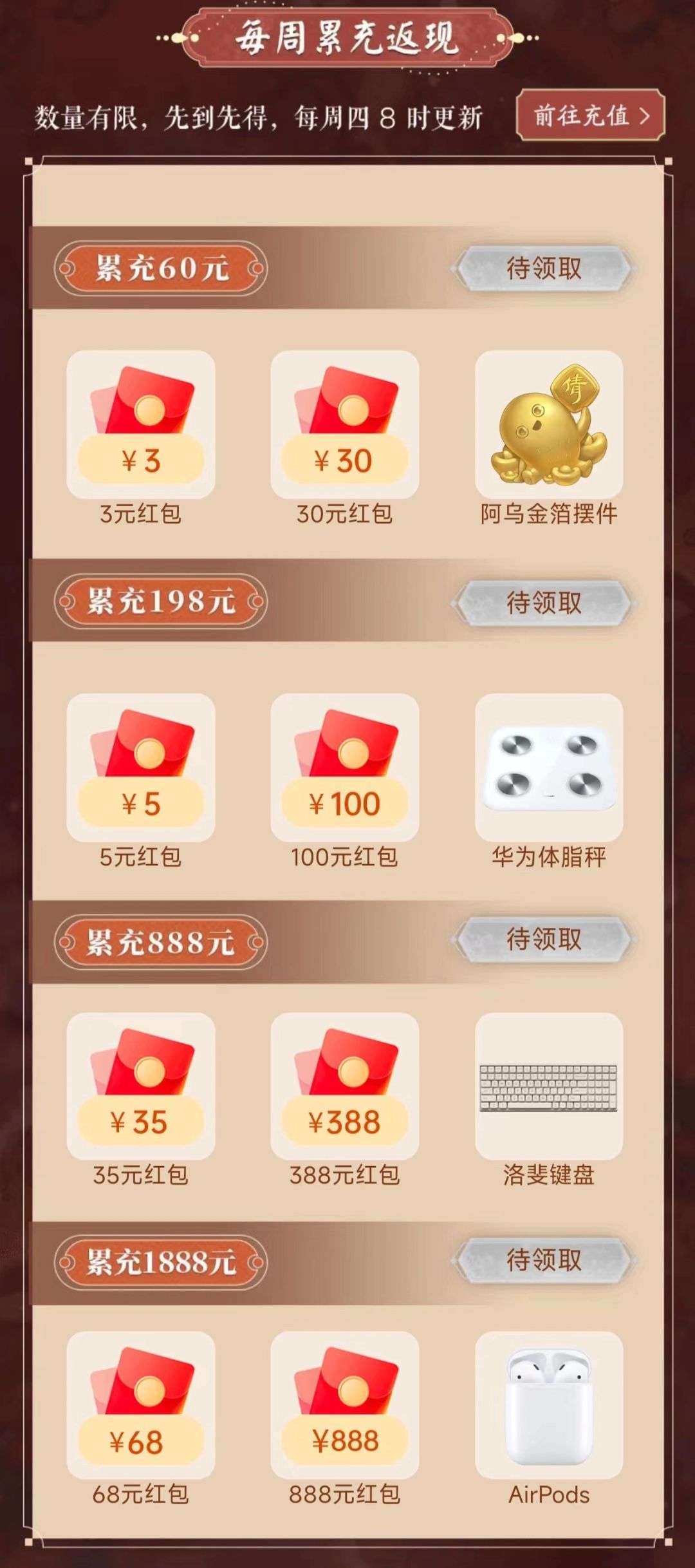 每周四重置奖励次数