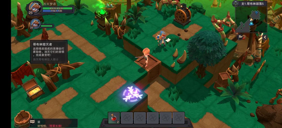哥布林部落5,开门机关在左上角推箱子搭桥,然后传送上去打开(详细见下面图5)。