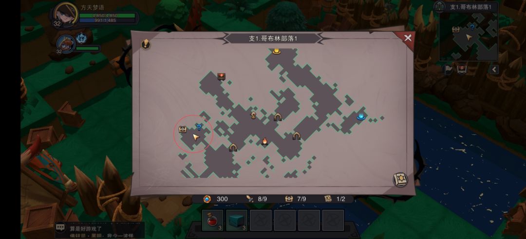 8.哥布林部落1,隐藏的2箱子和事件,详细见下方图片(图4)标记,铺砖过去。