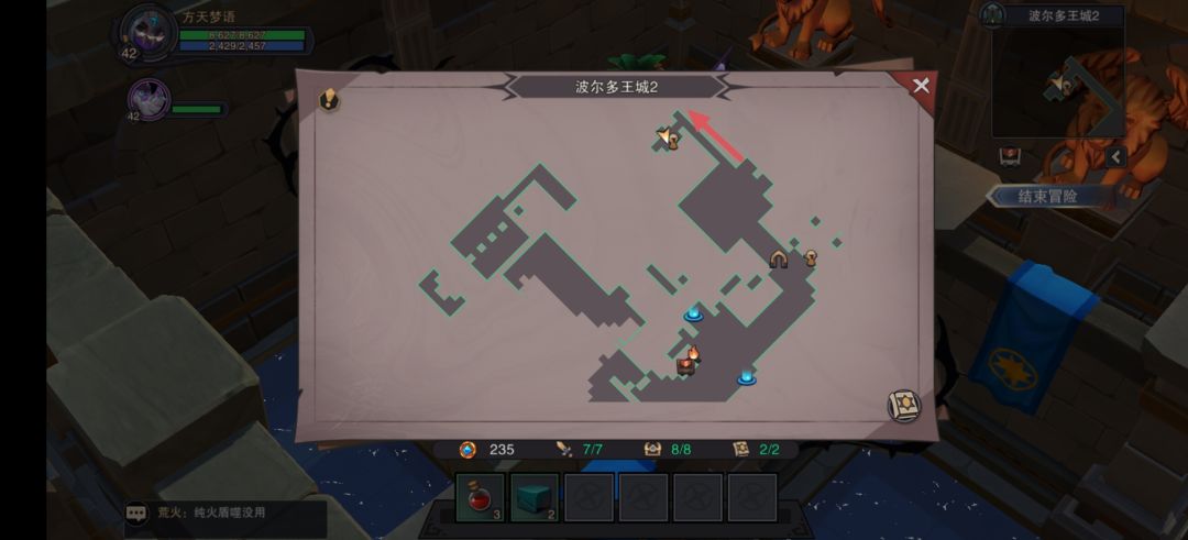 11.波尔多王城2,隐藏箱子1在传送门旁边法师NPC的左侧铺砖过去,隐藏箱子2见下方(图8)位置,箭头方向铺砖过去,位置比较隐秘。