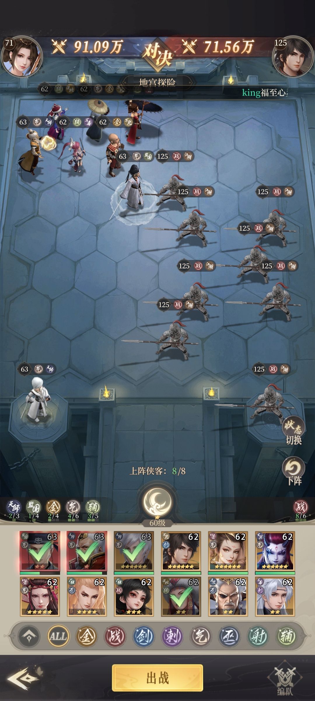 大家可以看看这套阵容,战力差不多的情况基本无伤打地宫