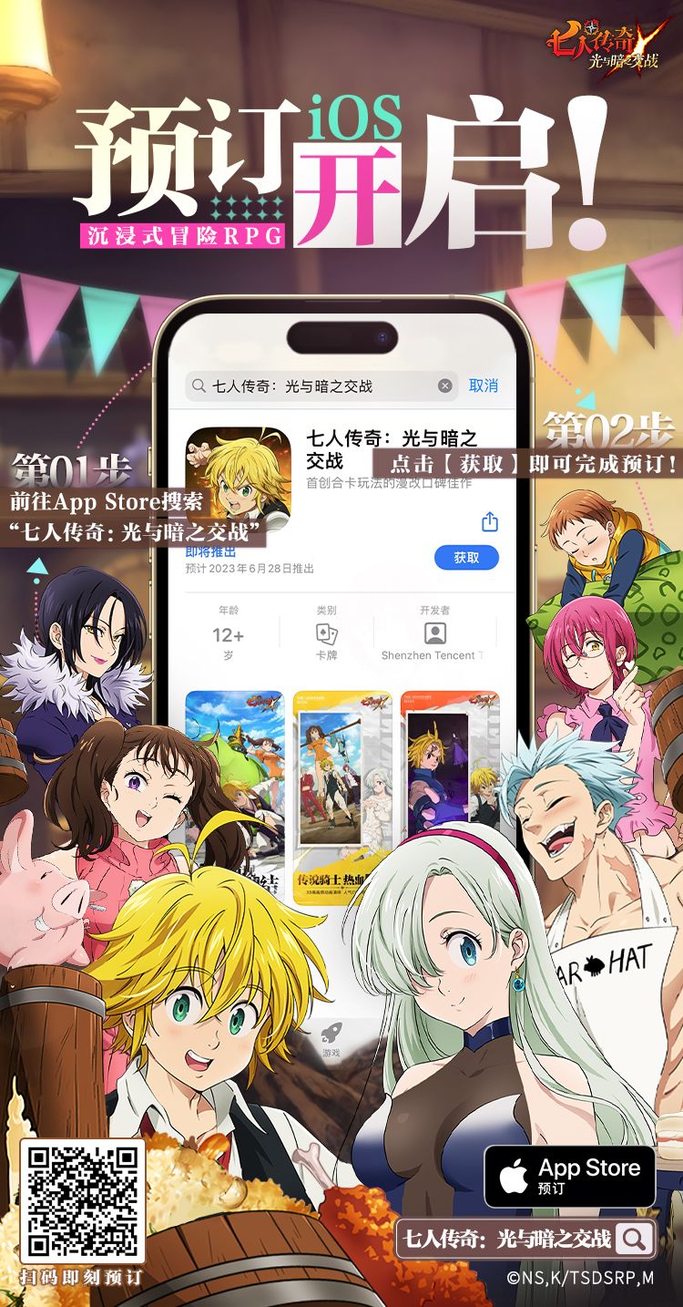 等候多时啦!很高兴地通知大家,《七人传奇:光与暗之交战》已于今日开放iOS预订啦!快来扫码预定吧!