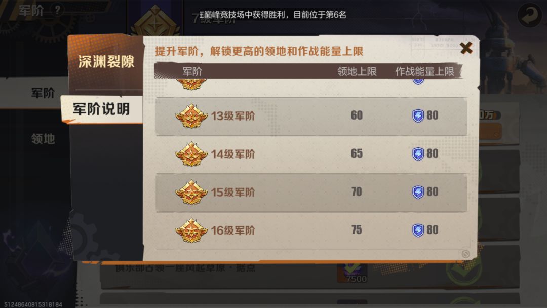 同时,深渊裂隙玩法还调整了12级军阶至16级军阶的领地上限,可占领的领地数量将显著提升,快去多多占领高级领地提高产能吧,俱乐部排行奖励等你来拿!
