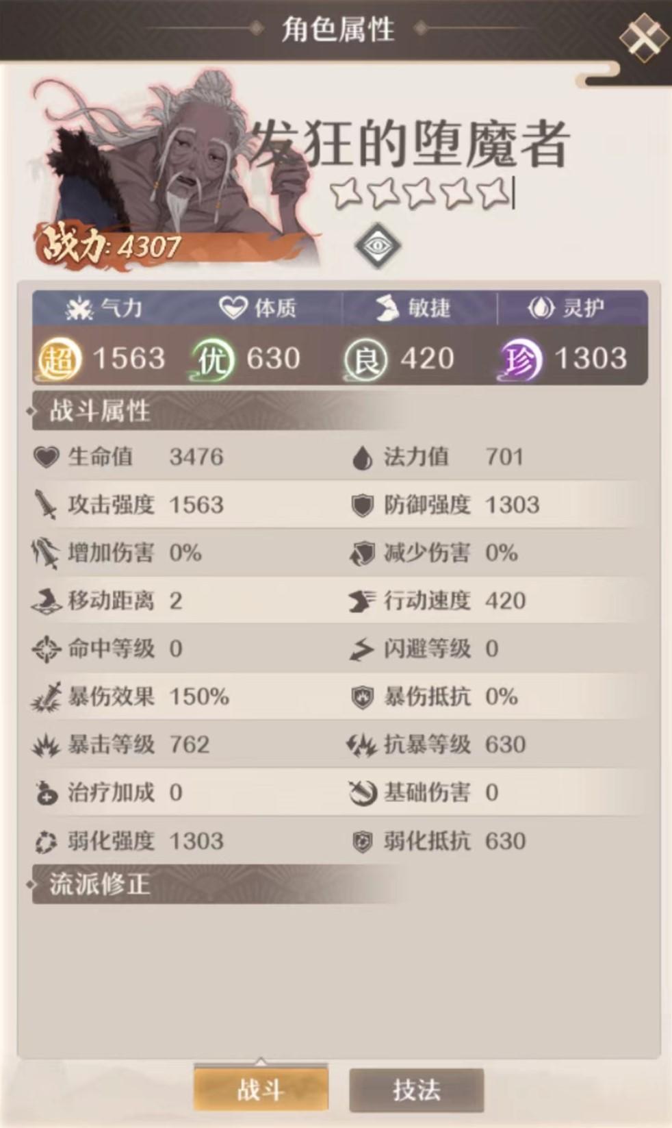 主线关卡玄天篇2-15“践行”我们会遇到发狂的堕魔者和堕魔浊气使。狂的堕魔者与前一关一样,基础属性为高攻击强度、高防御强度,中等的生命值,和较低的行动速度。技能方面发狂的堕魔者共有三个近战技能,分别是痛苦呻吟、撕心裂肺、黯然销魂,其中痛苦呻吟和撕心裂肺是单体伤害技能,黯然销魂则是群体伤害技能。