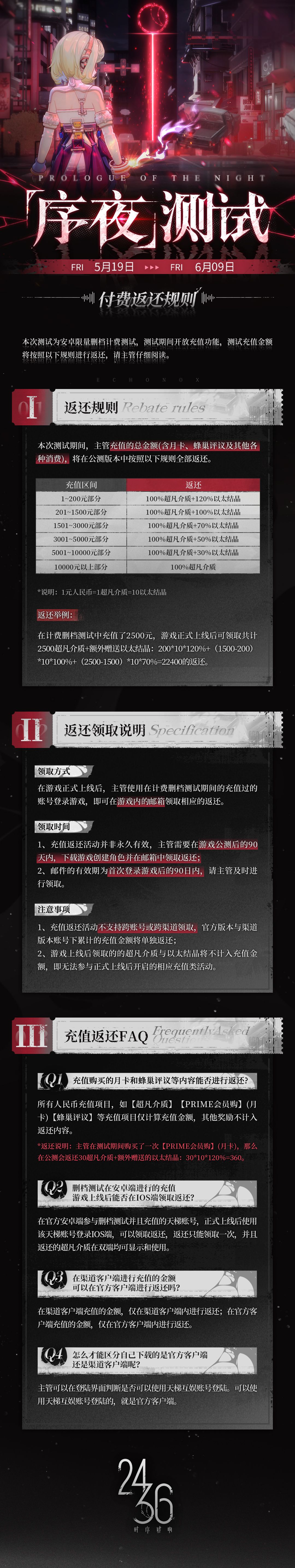 「序夜」测试充值返还说明