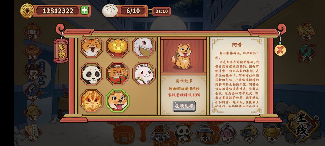 减10%的收益增加时长,但凡有个不减收益的宠物都不建议使用。