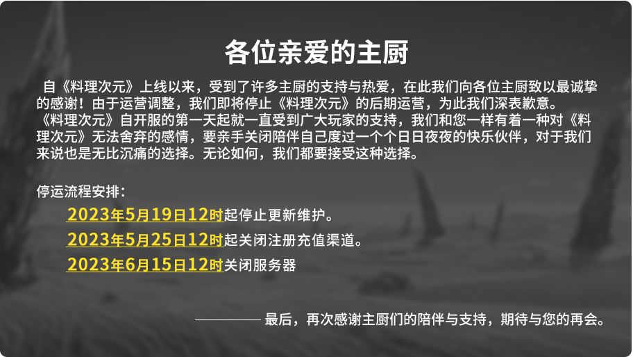 料理次元 停服公告