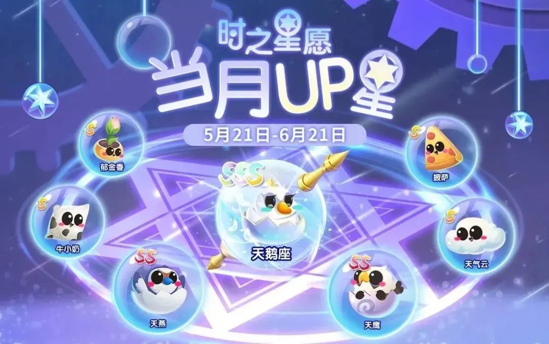 *天鹅座up星上线后,金牛座、天秤座、天蝎座、射手座、水瓶座、摩羯座、双鱼座、大熊座及它们的星座伴生鱼可在时之星愿中祈愿获得。