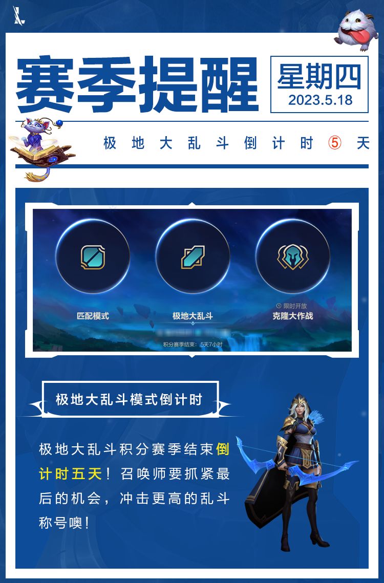 不仅如此,在5月22日(下周一)登录可直领周一幸运宝箱。召唤师记得按时领取呀~