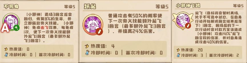 特殊技能跃起则是每次普攻都有50%概率增加1回合起飞,这是小邪神增伤的主要来源。设小邪神大招只起飞1回合暴击时的伤害为1星号币