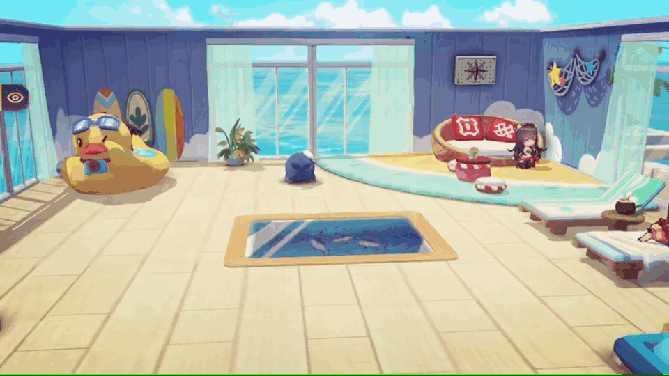 不仅能从窗口看到蔚蓝的海面,还能观察神使们和家居的互动,