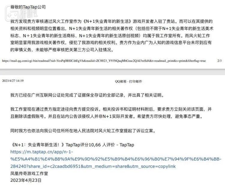 《N+1》均收到了一条来自所谓“凤凰传奇游戏工作室”的投诉。对方声称这款游戏的相关版权属于他们,要求平台方将其下架。